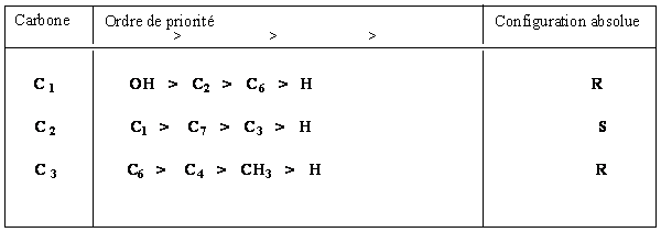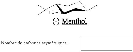 A4. Dénombrer les carbones asymétriques du (-) menthol et donner leur configuration absolue en précisant les ordres de priorité.
