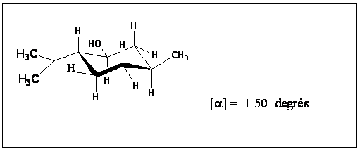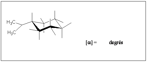 A5. Dessiner la structure du (+) menthol en utilisant le cycle prédessiné et donner son pouvoir rotatoire spécifique sachant que celui du (-) menthol est [a] = -50 degrés.