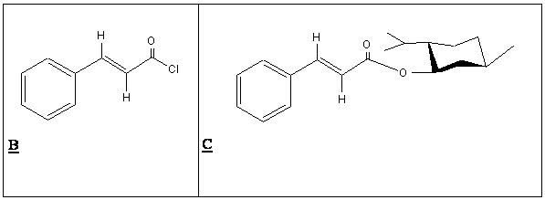 Donner la structure de D et D’ en projection de Fischer. Le groupement (-) menthyle est représenté par M* et le groupement phényle par C6H5.
