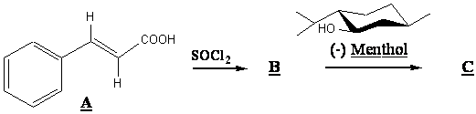 A7. Donner le mécanisme de formation de D et D’. On simplifiera les écritures en notant le groupement (-) menthyle par M* et le groupement phényle par F ou C6H5.