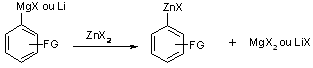 La transformation en zincique correspondant se fait par réaction du magnésien aromatique avec un halogénure de zinc (ZnBr2 ou ZnCl2).